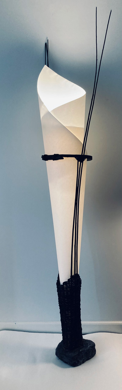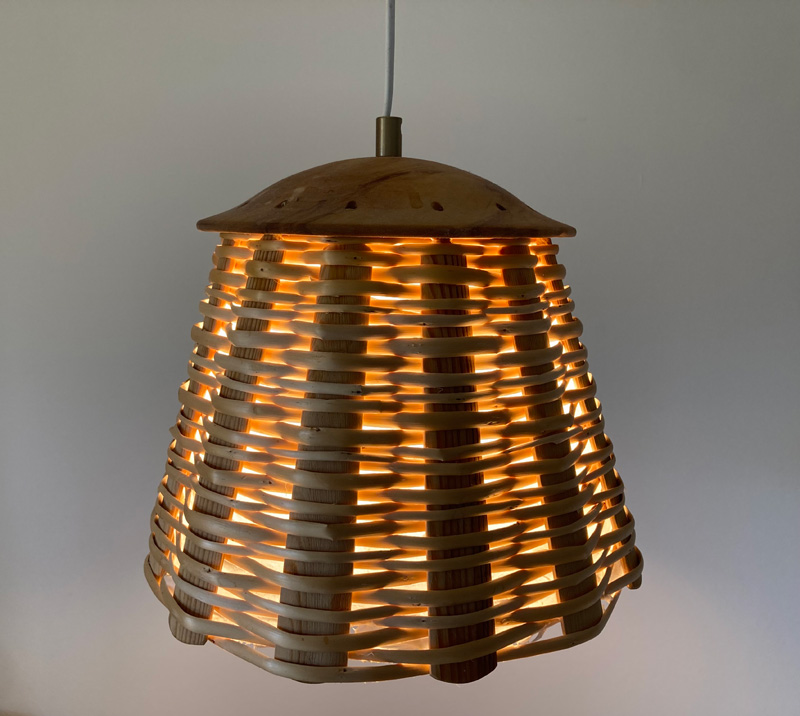 Materialer: Pil, håndgjort papir, birkebark, metal i bund og stænger. Papiret kan udskiftes. Overfladebehandlet med smudsafvisende giftfri olie.